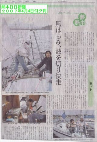 A.海の日の行事などでは地元の新聞等に取り上げてもらっていますが、ここでは、季節もののローカルニュースではなく、所属するヨットやクラブ員が取り上げられている雑誌や新聞の記事を紹介します。 注記: 著作権について各著作権者に照会しましたが、雑誌については社外のライターに依頼した原稿については許可を得るのがむずかしく、新聞記事については利用料が予算枠を超えていますので、内容が読めない程度に縮小して掲載してあります。興味のある方は図書館等でご覧ください(『KAZI』2006年3月号と『プラザインプラザ』No.19 は許可が得られましたので、クリックすれば普通に読めます)。 |